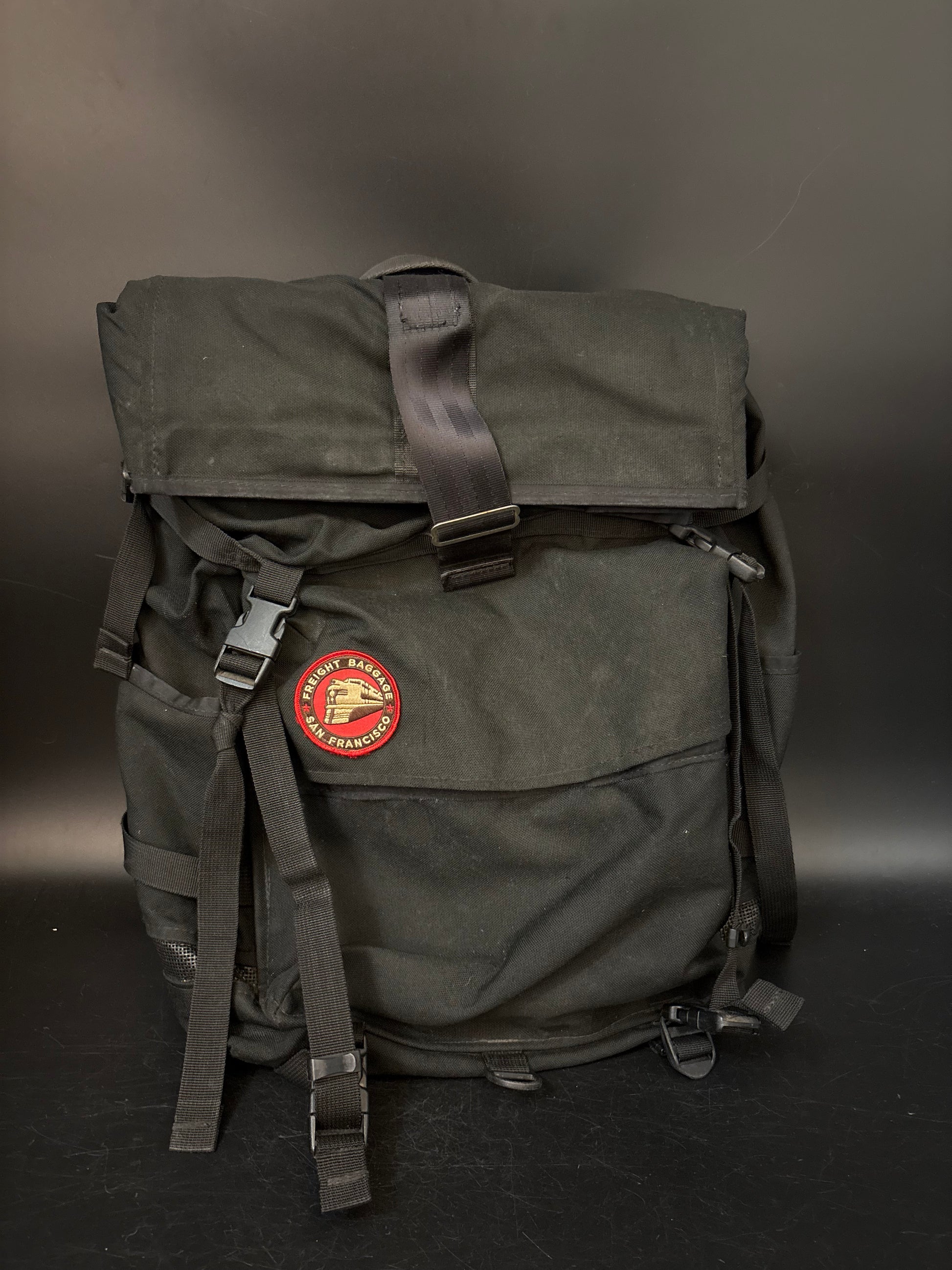 Freight Baggage Roll Top Messenger Bag Backpack Black